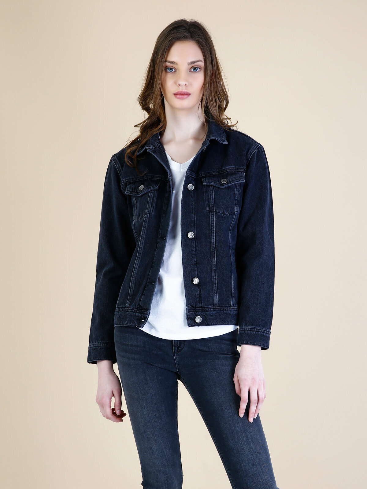 Джинсова Куртка Жіноча Темно-Синя Класичного Крою CL1034729